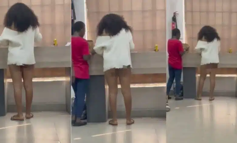 A Nigerian man has caused a stir online as he shares a video of the obscenely revealing outfit a lady wore to a bank.