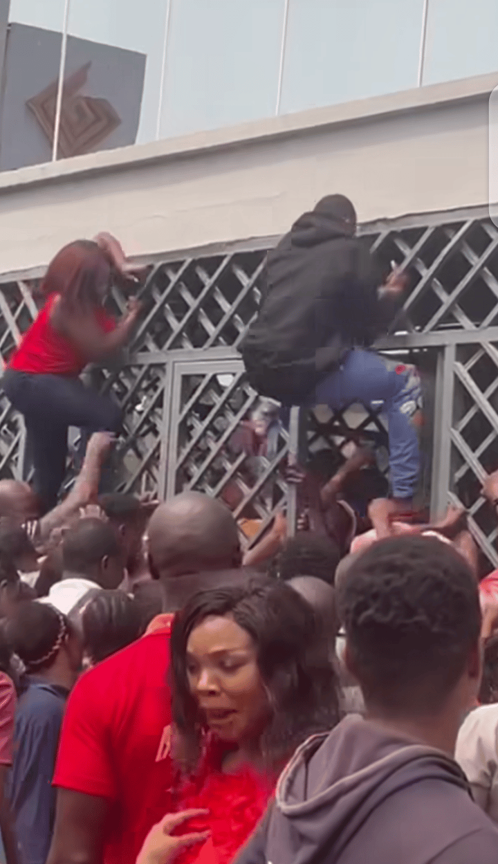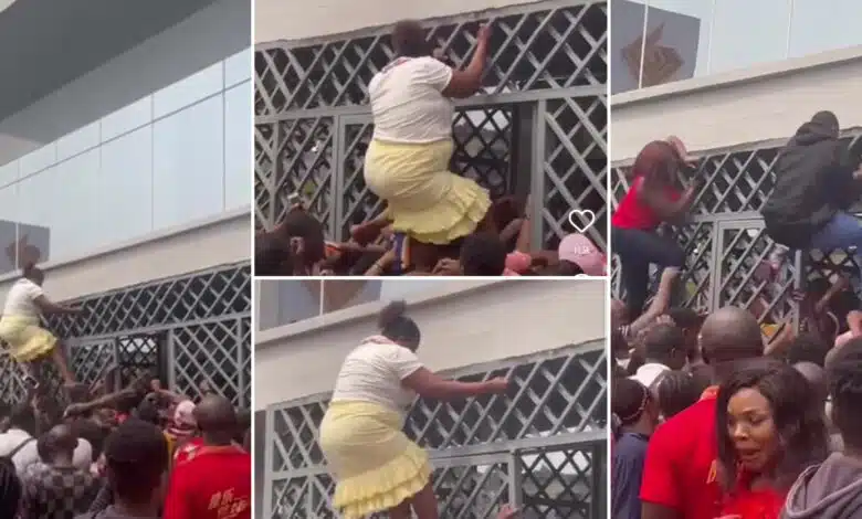 A video in rapid circulation has shown the moment a Nigerian woman climbed the gate of a bank to get into the premises.