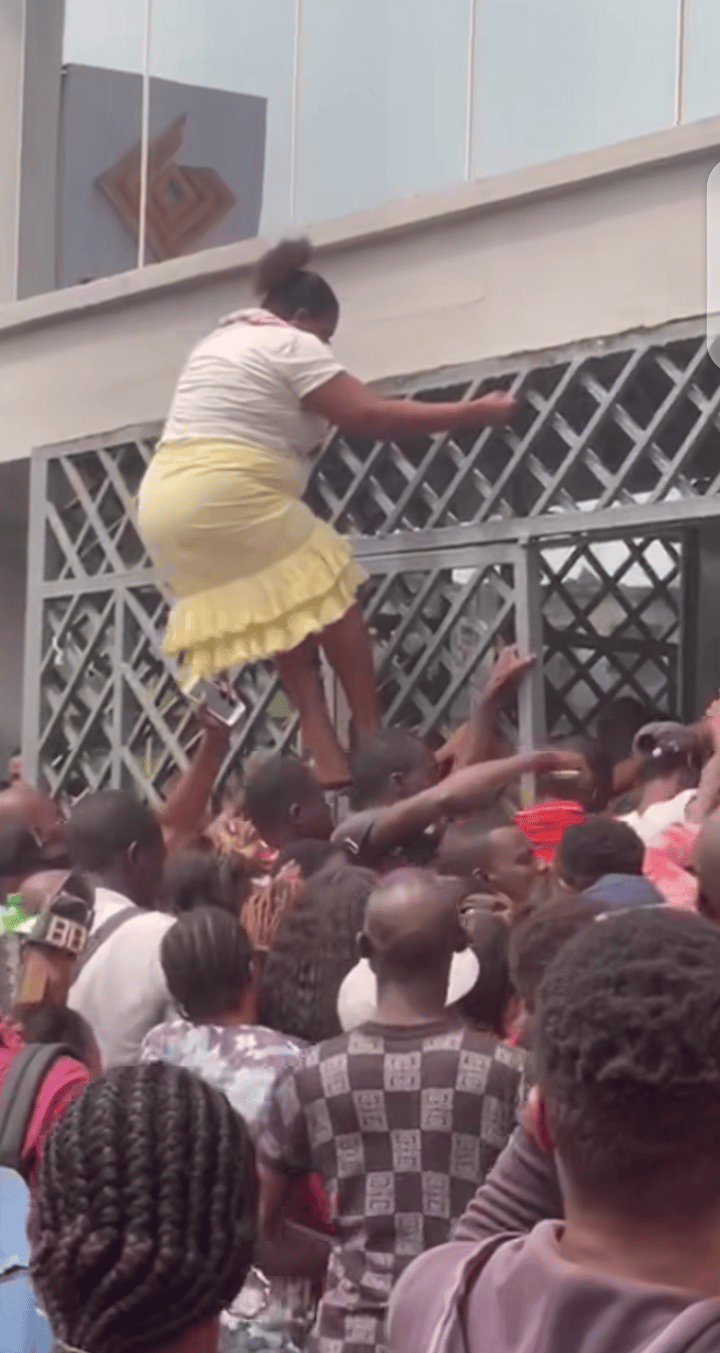 In the viral video, the woman was spotted climbing the gate at access bank just to gain entrance into the bank.