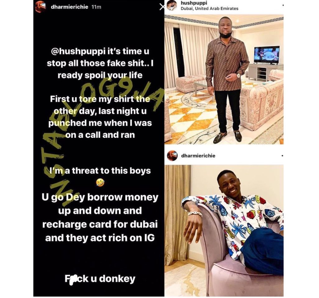 According to Dharmie Richie, Hushpuppi lives a fake life and is always borrowing money just to recharge his phone.