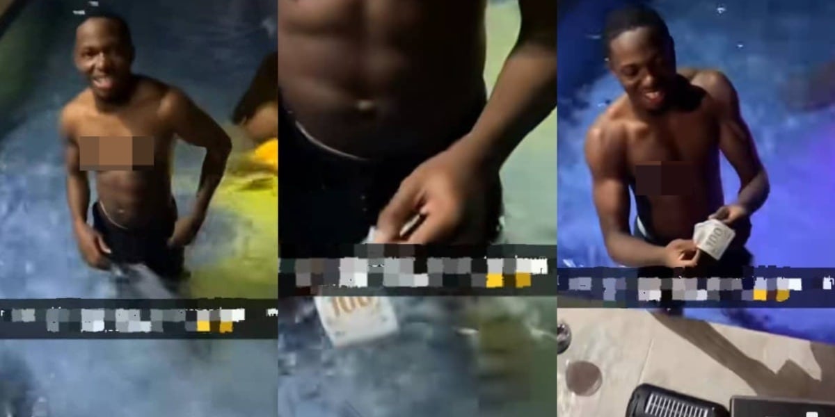 While enjoying a refreshing swim, he paused to retrieve the money from his pocket, which, as shown in the video, is equivalent to N1.6 million.