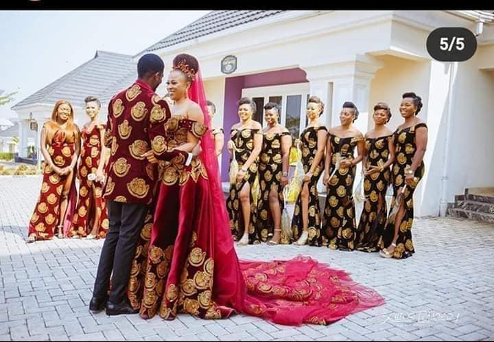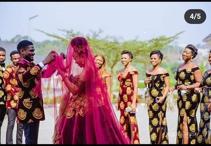 Photos which have gone viral on social media, shows a Nigerian man and his wife saying ‘I Do’ in Isiagu suit and wedding gown.