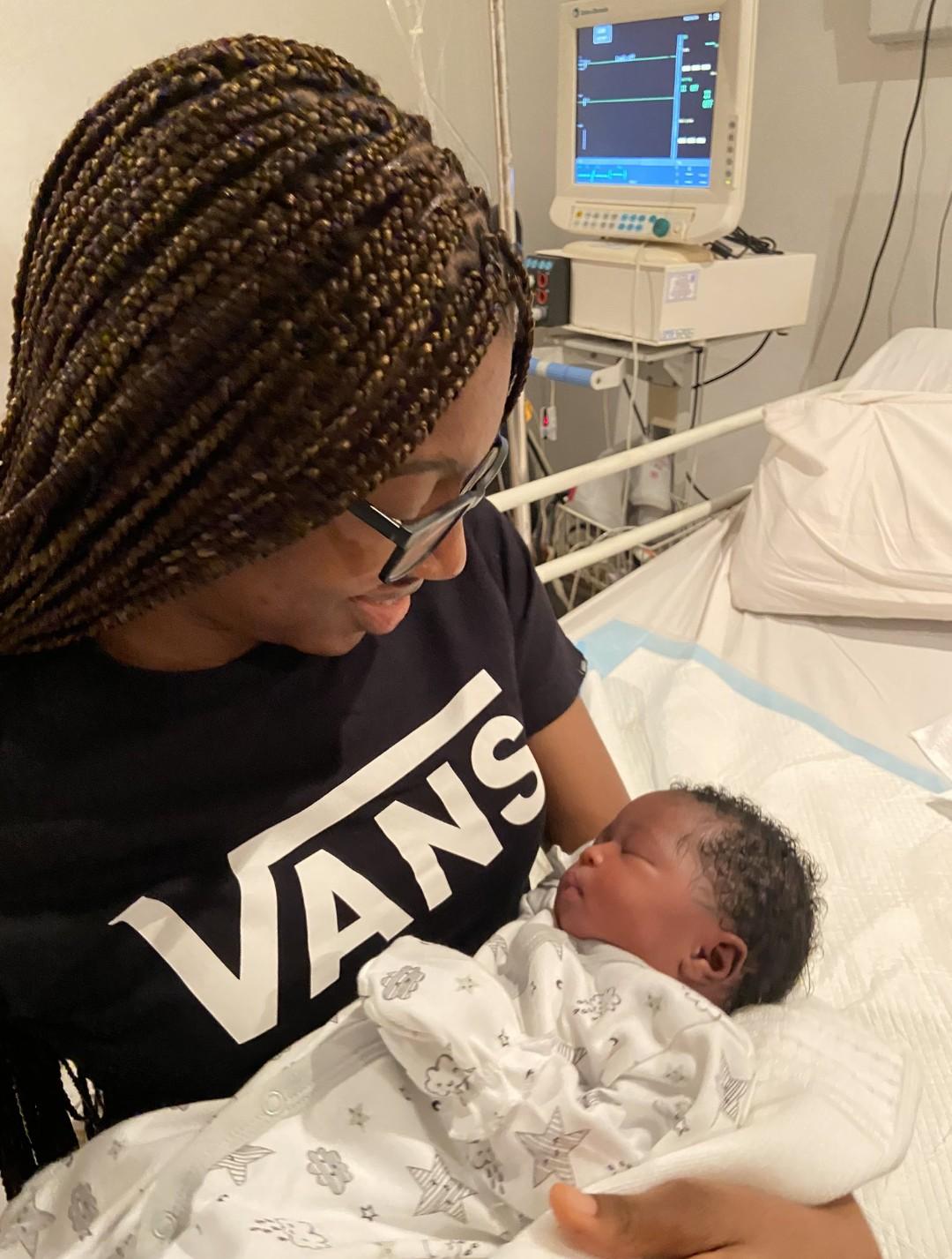 Their first daughter, Nkem took to Twitter to share the good news with her followers. Congratulatory messages have been pouring in for the happy couple on their new bundle of joy.