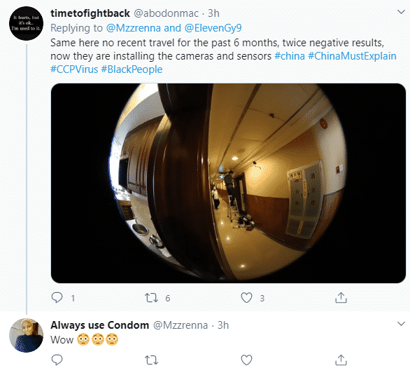 I am under surveillance, directed not to go outside. What did we Africans do to deserve this? Why can’t all chinese people also go under quarantine? I pray I don’t get kicked out after the 14days. By the way,I was forced to be tested.