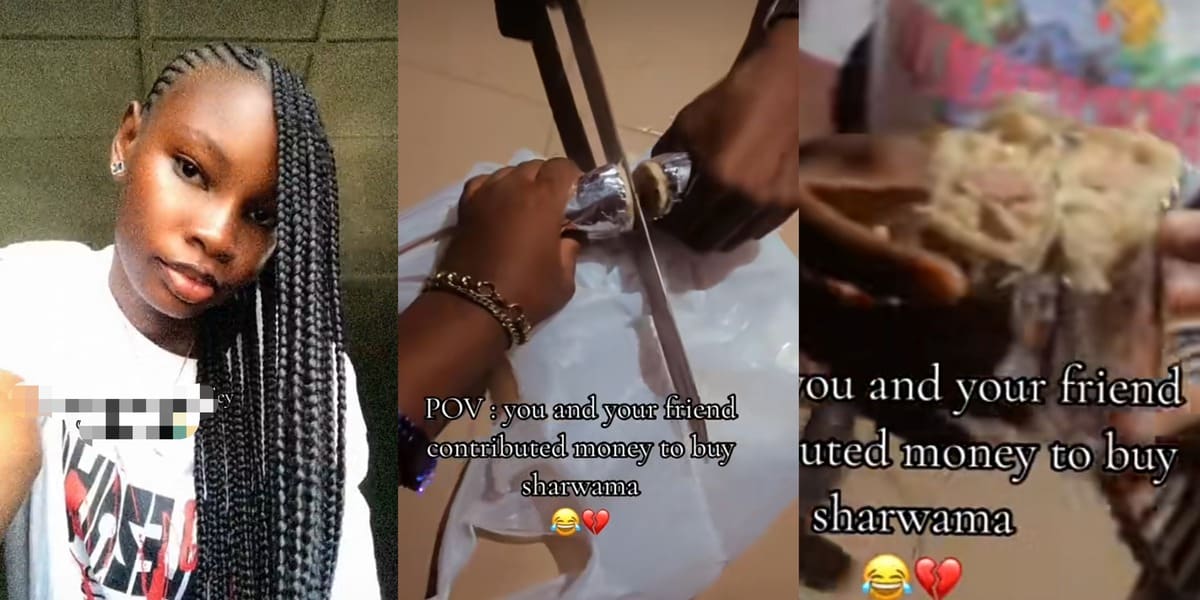 A Nigerian lady sparked a discussion on social media as she and her friend used a large cutlass to divide a shawarma they had contributed money to buy, to prevent any cheating.