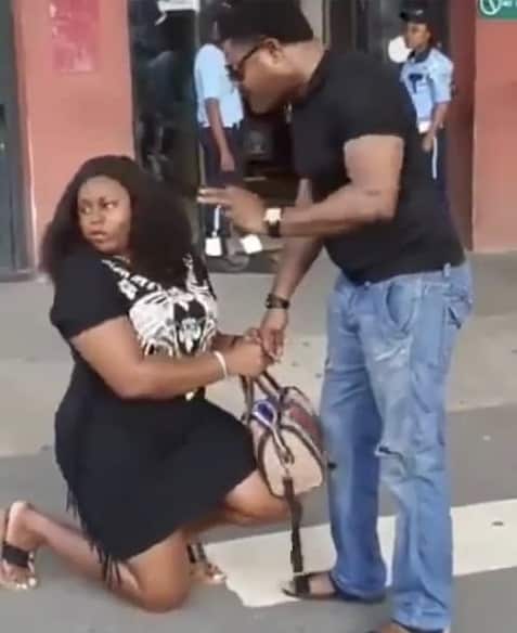 The woman who didn’t care that people were looking at her in the public, insisted that he must accept her ring. She said she was tired of waiting for him to propose, so she decided to take the decisive posture.