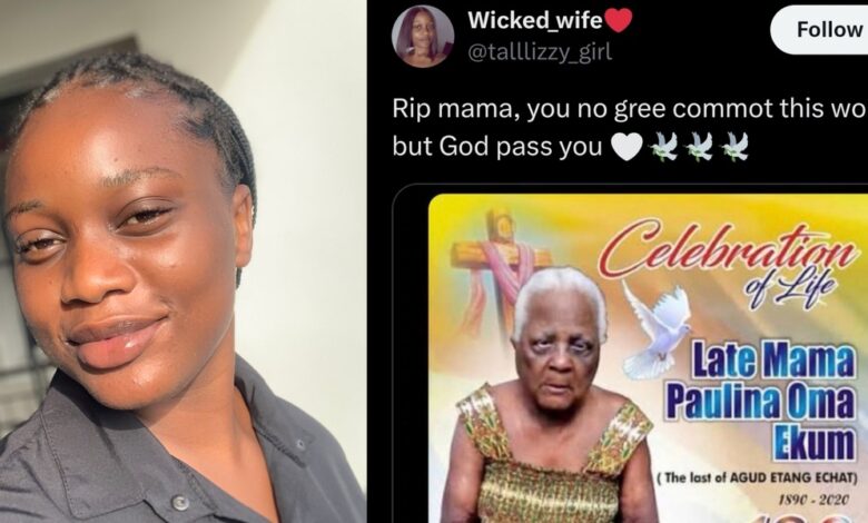A Nigerian lady mourns her 130-year-old grandmother, who passed away, expressing her faith in God’s will surpassing her grandmother‘s desire to stay in this world.