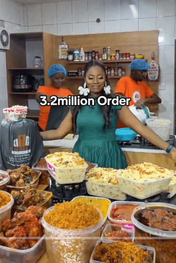 A Nigerian lady known as @hotmbycheft took internet by storm as she celebrated her birthday in style, showing off a food order valued at N3.2 million that she received on her birthday.