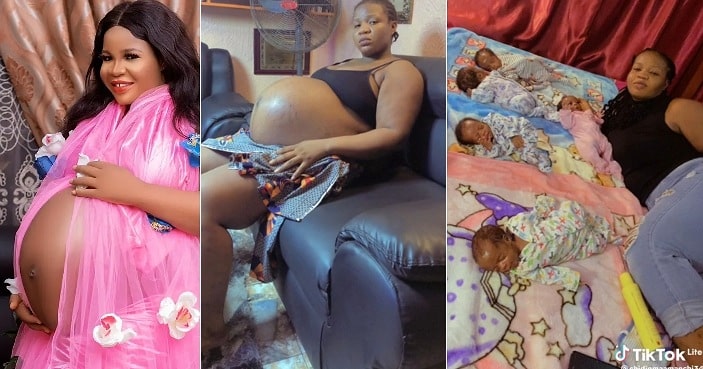 A Nigerian lady identified as @chidinmaamaechi34 on TikTok has shared how her nine years of childlessness turned to joy as she gave birth to quintuplets.
