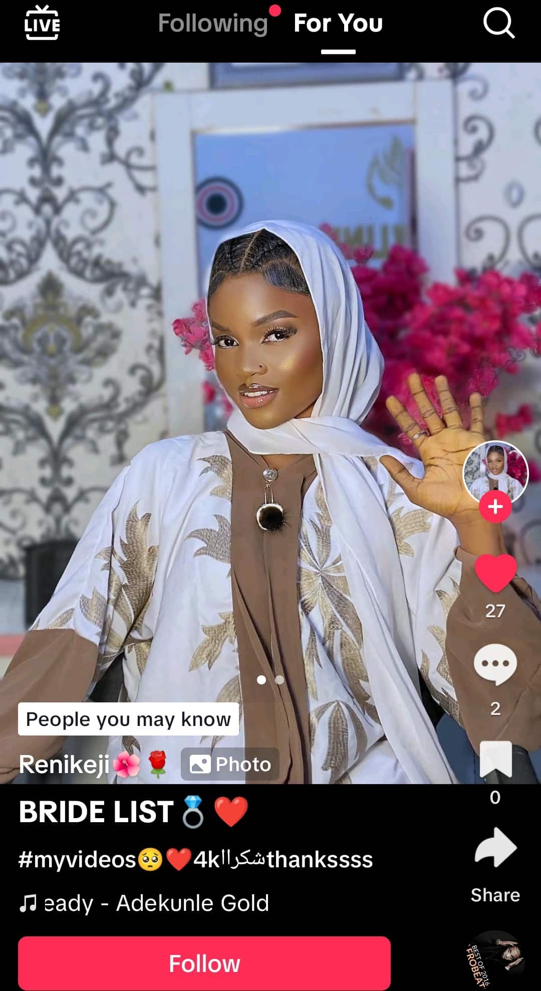 This was revealed in a post she made on her page on the popular social media platform TikTok.