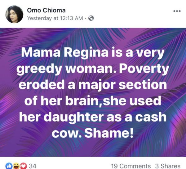 Nigerian lady drags Regina Daniels’ mother to hell and back