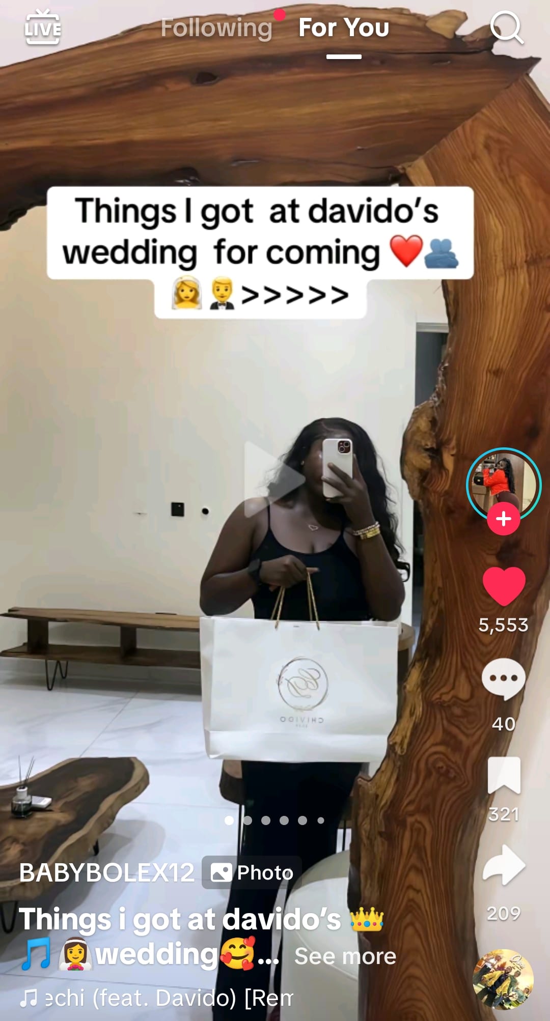 The lady shared the post with the caption: “Things I got at Davido’s wedding for coming.”