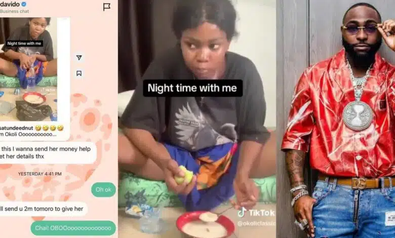 Nigerian lady gifted ₦2 million by Davido for drinking garri with apple and biscuits in viral video