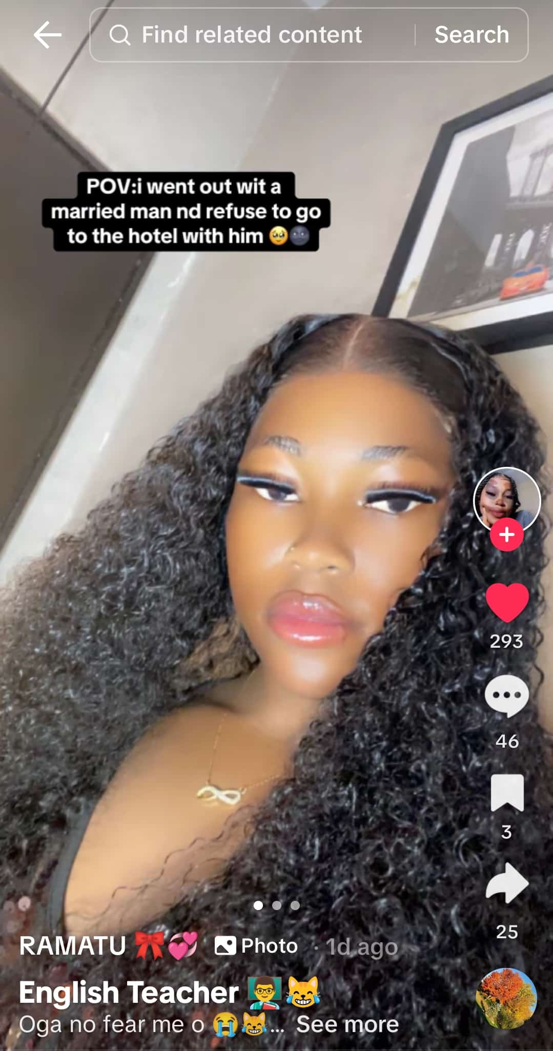 The caption of the video better explains the event: “I went out with a married man and refused to go to the hotel with him.”