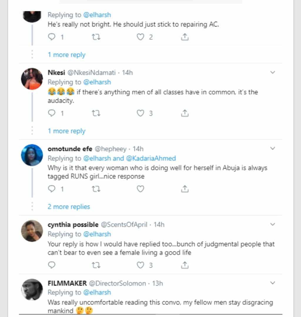The AC repairer, instead of retracing his steps, praised her again for being honest with him and for quitting her ‘runz life‘ because some women “carry it to their husband’s house“.