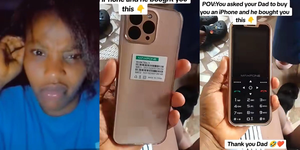 A Nigerian lady caused a scene by showing off the phone her father bought for her after she begged him to buy her a brand new iPhone.