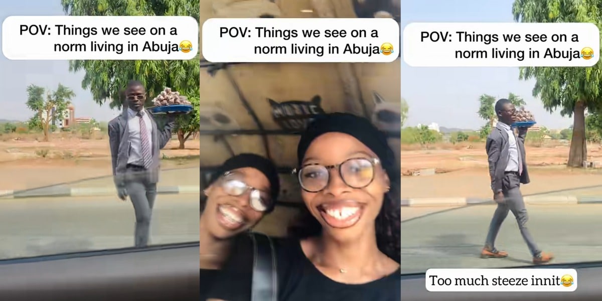 A Nigerian lady sparked conversation on social media by showcasing the unusual things she sees in Abuja city, including a man hawking his goods while wearing a corporate suit.