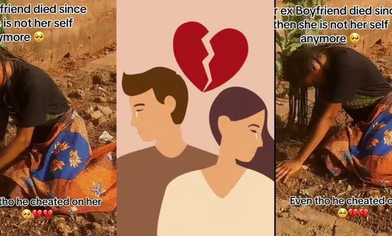 Nigerian lady visits ex-boyfriend’s grave despite past cheating scandal, cries profusely as she misses him