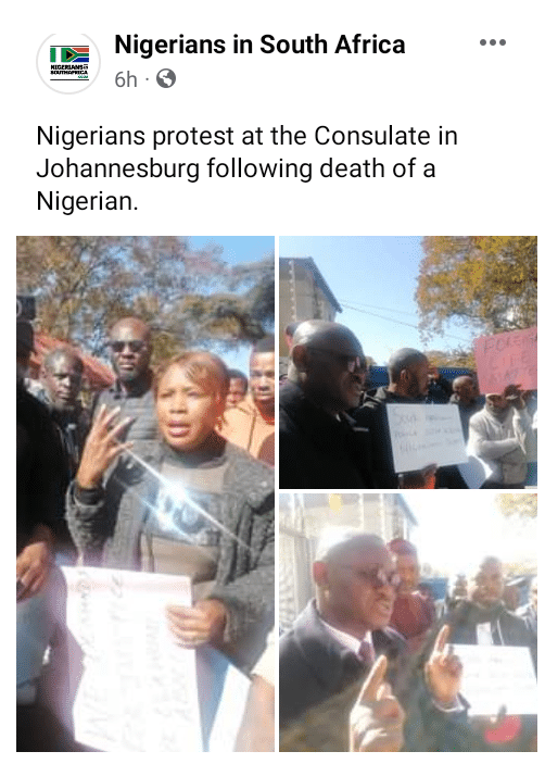 Photos shared on the Nigerians in South Africa Facebook page depict Nigerian nationals taking to the streets, demanding justice for the deceased and expressing their grievances over the incident.