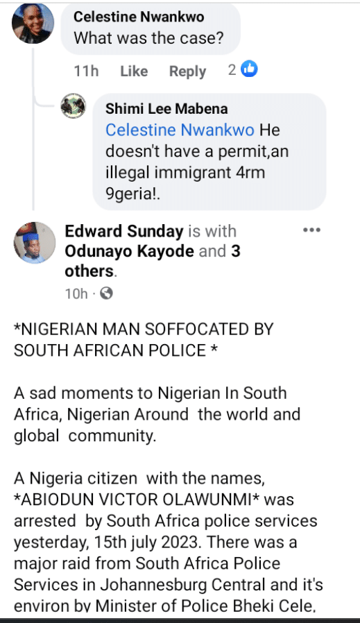 A Nigerian man identified as Abiodun Victor Olawunmi reportedly lost his life while in the custody of the South African Police Service in Johannesburg.