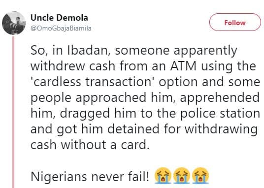Nigerian man caught withdrawing money without ‘ATM card’ in Ibadan