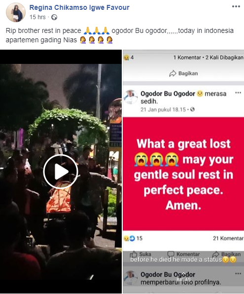 There are conflicting reports about how he died. Some Nigerians in Indonesia claim that while trying to run from the officers, Ogodor bu Ogodor attempted to cross over to his neighbour’s house through a narrow ledge but he slipped and fell. However, Ogodor’s Nigerian neighbours are demanding answers as they claim they heard nothing about an immigration raid in the area.