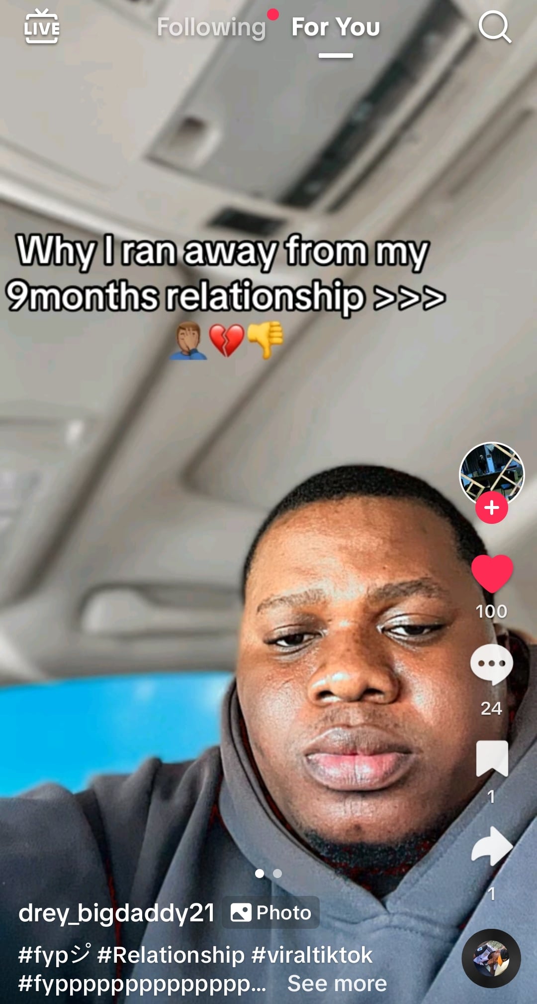 He shared a photo of himself with a caption that read: “Why I ran away from my 9 months relationship.”