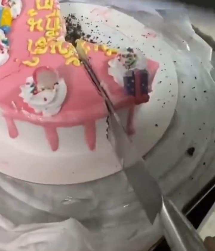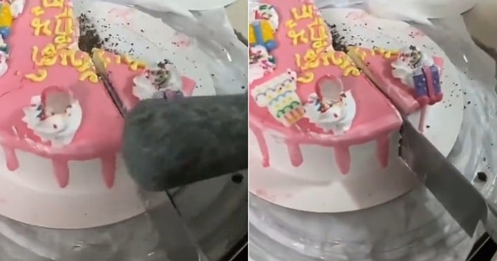 A trending video on TikTok shows the moment a Nigerian man struggled to cut the cake a vendor delivered to him.