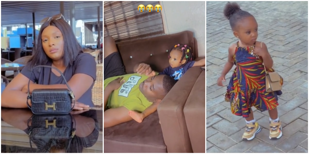 The touching clip, shared by @amakababy5 on TikTok, shows a tender scene where the father lovingly rests his head on his little daughter’s lap.