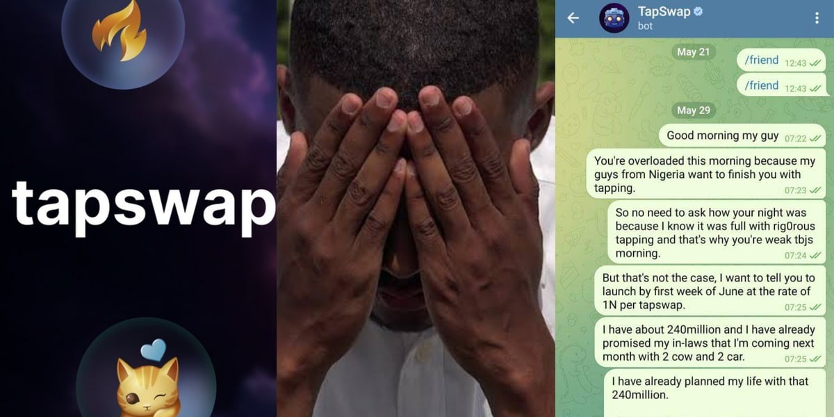 Nigerian man promises in-laws 2 cars, begs TapSwap to launch June 1, to convert 240 million coins to ₦240m