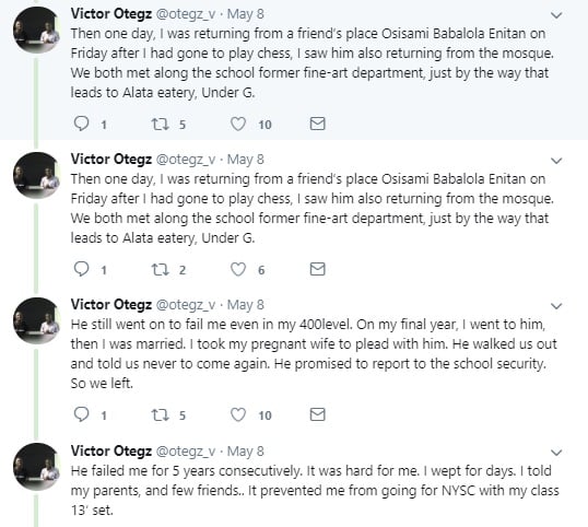Nigerian man recounts how he paid back a lecturer who failed him for six years in LAUTECH