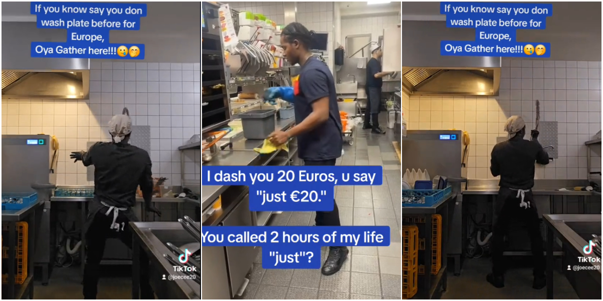Nigerian man relocates to Europe, celebrates as he lands ‘plate-washing’ job