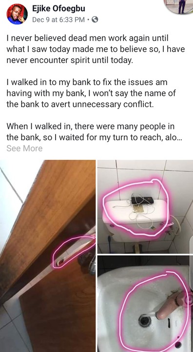 A Nigerian man identified as Ejike Ofoegbu has taken to social media to narrate his encounter with a ghost at a bank.