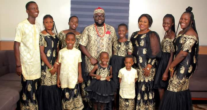 Nigerian man shares lovely photo of his “God-sent wife, 5 awesome biological children, 3 amazing adopted kids and one fantastic house maid” as he celebrates 16th wedding anniversary