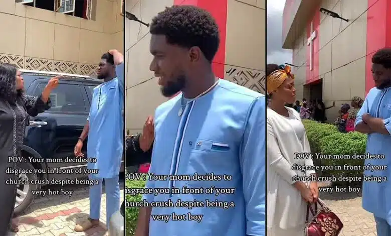 A Nigerian man recently shared a video of his mother disgracing him in front of his crush outside the church premises.