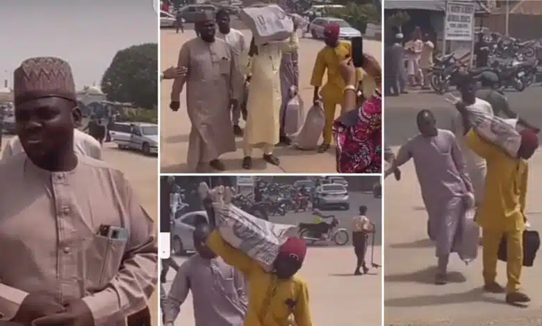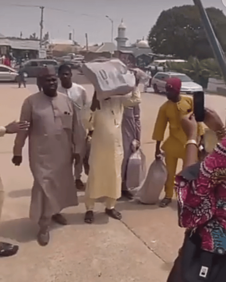 In the video, he was spotted carrying the money in different sacks. He had one on his head and also employed the services of people who helped him to carry the rest of the cash.
