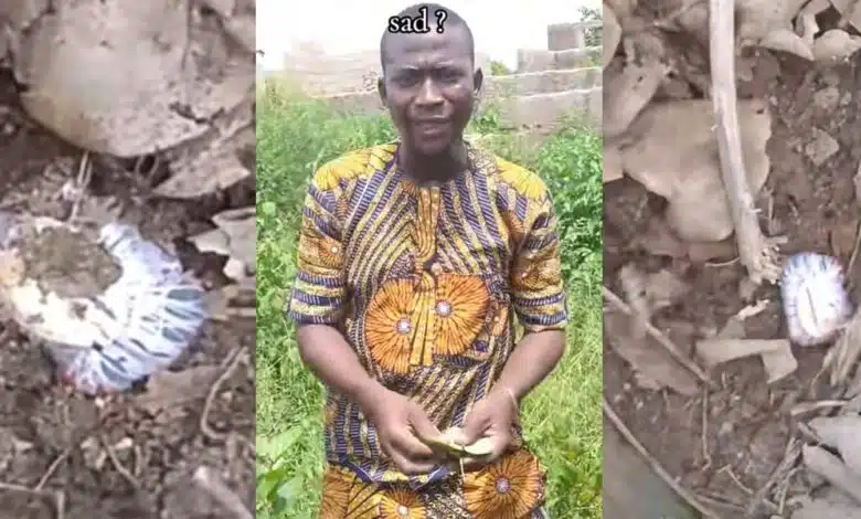 A Nigerian man sparked a conversation on social media after discovering a native charm hidden on his land where he is building his house.