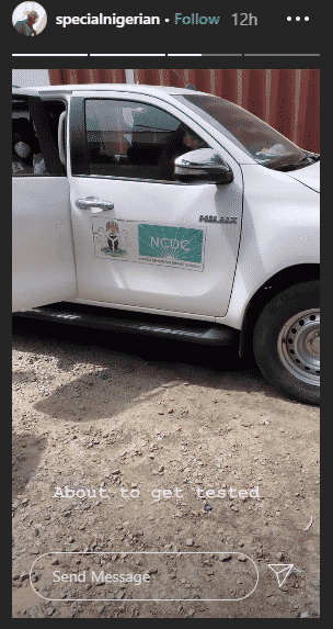 Serving an update, the documentary photographer said a medical team was sent over by the NCDC to get him tested after he spoke to Lagos State Commissioner for health.
