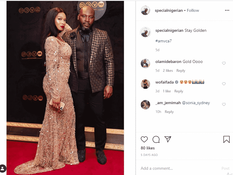A search on his Instagram page also confirmed that he attended the 2020 AMVCA. Here is a photo of him and commediene Wofai Fada at the awards below;