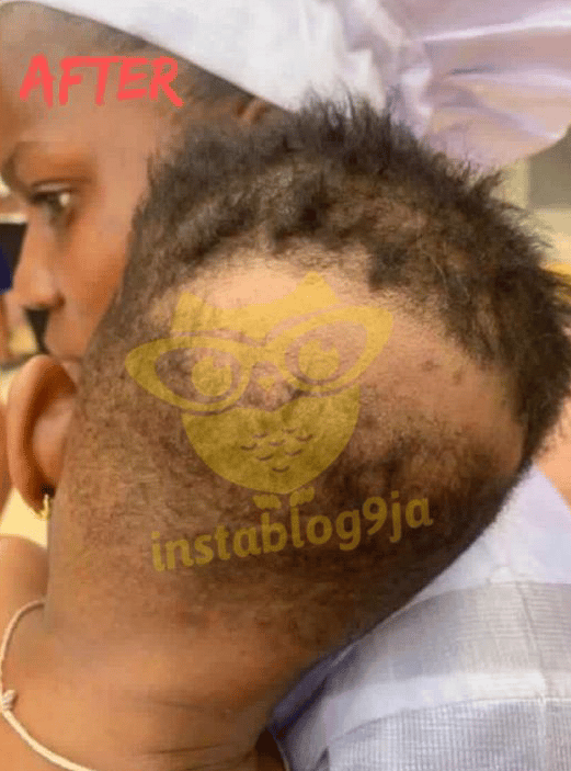 A Nigerian mother has cried out on social media after discovering that her two-year-old daughter’s hair was scraped off in school.