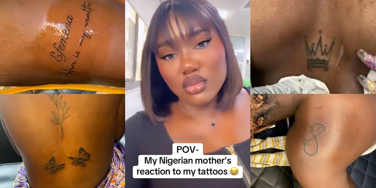 Nigerian mother rants as daughter gets 6 permanent tattoos, vows to relocate her from Lekki to Ikorodu