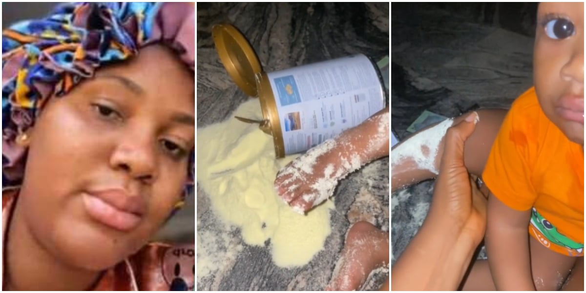 A Nigerian mother has taken to social media to share her dismay after her young son accidentally spilled a container of powdered milk that she reportedly bought for N27k.