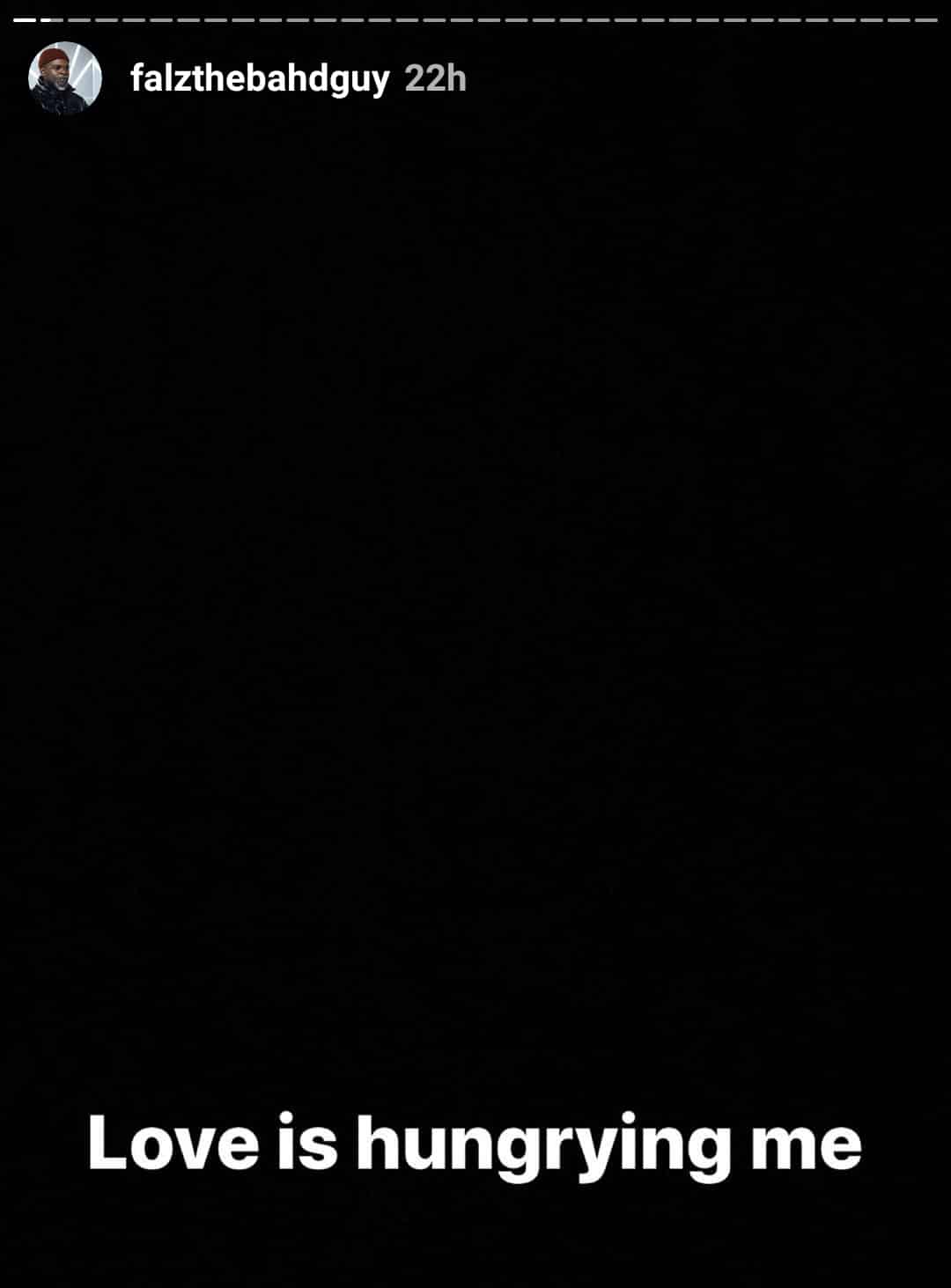 Falz made the confession this morning on his Instagram story with a short statement, saying:#