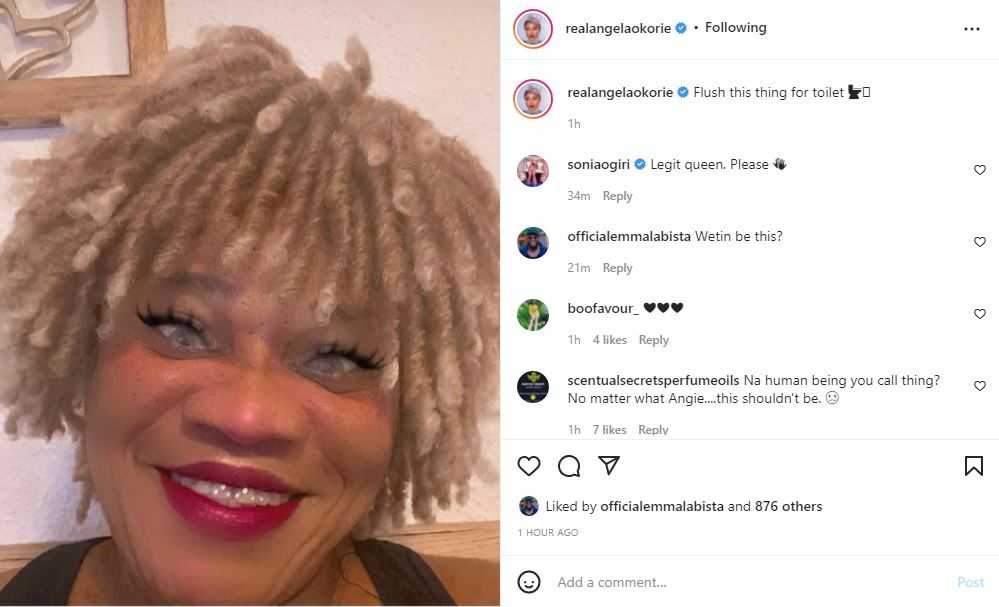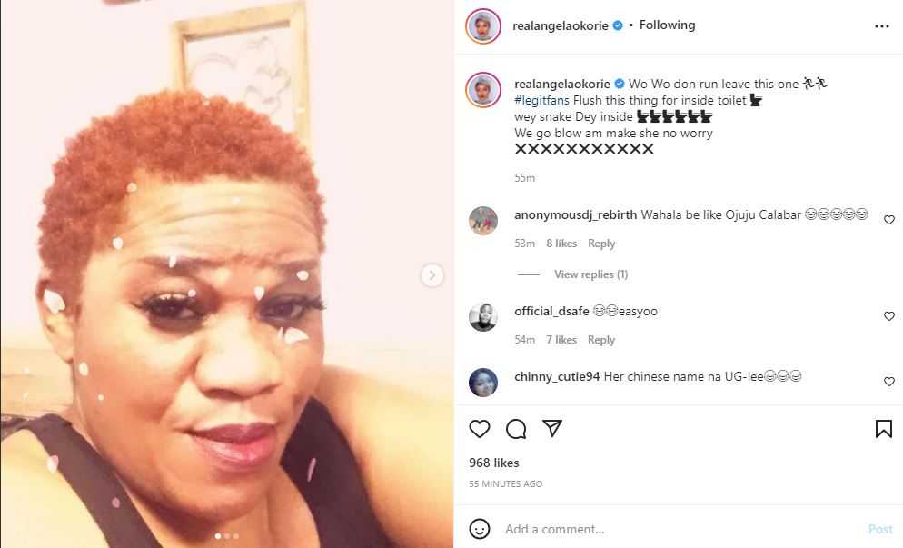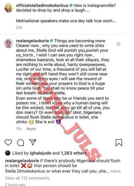 The jab came after the blogger shared a meme on her page and Angela Okorie capitalized on this to rain hurtful words on her. She also claimed that the blogger once sent her friends to poison her.
