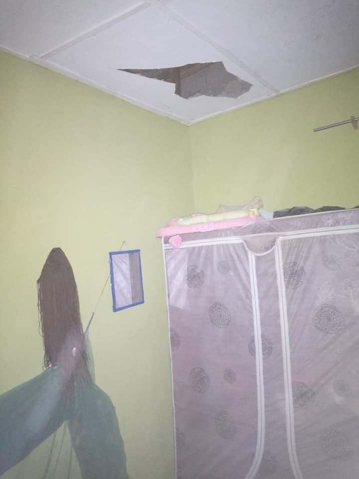 Nigerian woman and her baby almost killed as huge block crashes through roof, bedroom ceiling, and fell on them while sleeping (photos)