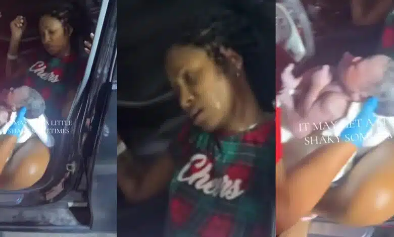 A Nigerian woman sparked emotional reactions on social media as she delivered a baby in her car while driving herself to the hospital.
