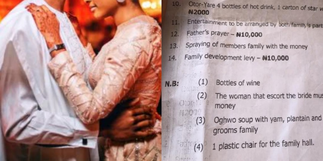 A Nigerian lady, Confidence Utomi, has shared on her page the list her family gave to her husband after visiting to ask for her hand in marriage.