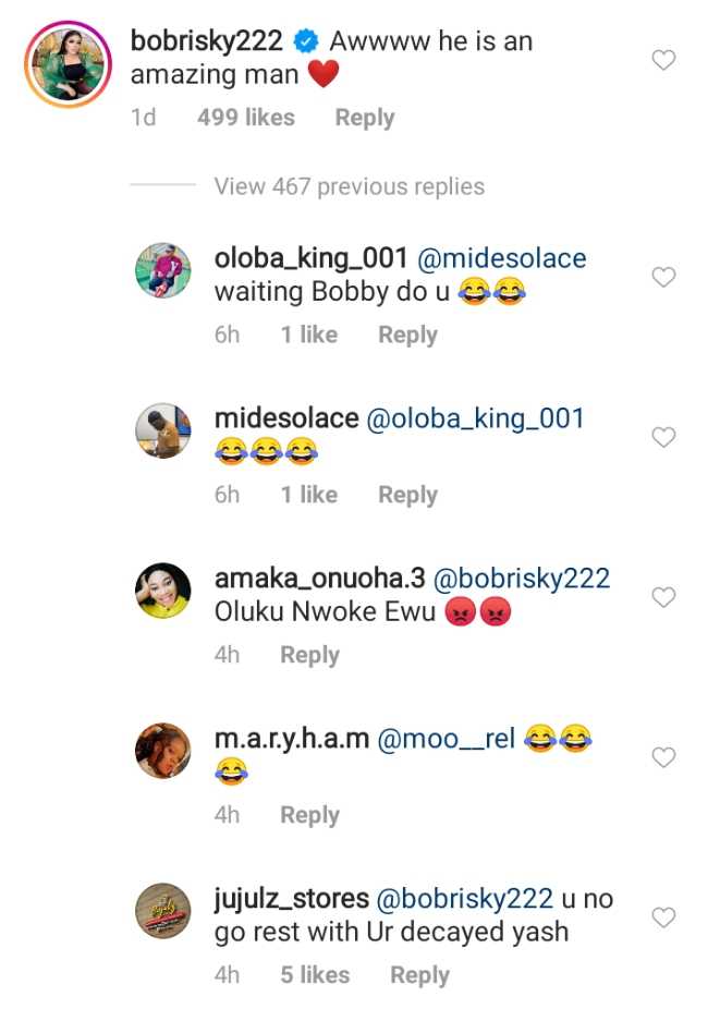 However, reacting to the entire drama, Bobrisky took to the comment section of Mwecy Aigbe’s post to claim that Mercy Aigbe’s new husband is an amazing man.