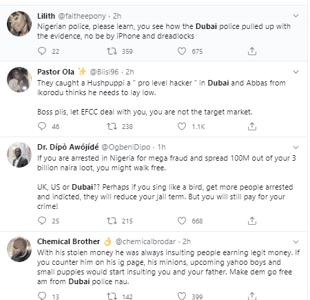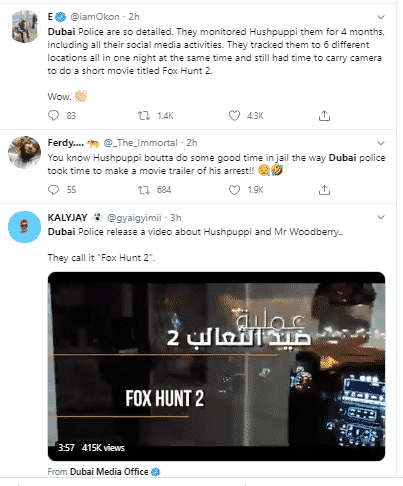 Nigerians have taken to Twitter to react. Many praised Dubai Police for their thorough investigation which led to the arrest of Hushpuppi, Mr. Woodberry, and their cybercrime gang.