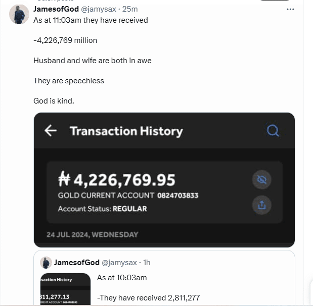 In a post shared by @jamysax, who initially made the report on X, the total amount received at 11:03 am was 4,226,769 million.